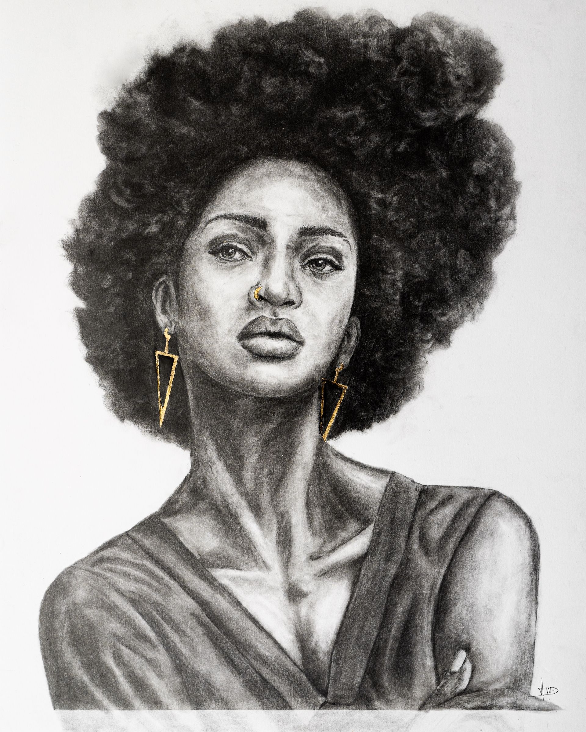 Willis’s creative process begins by mapping the structure of his subjects from a blend of both imagination and photographic references. Through meticulous layering of detail, the features emerge while maintaining a painterly touch.